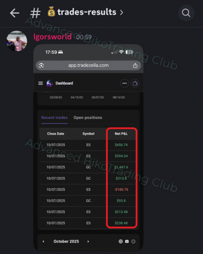 Reviews real trades with students during live sessions
